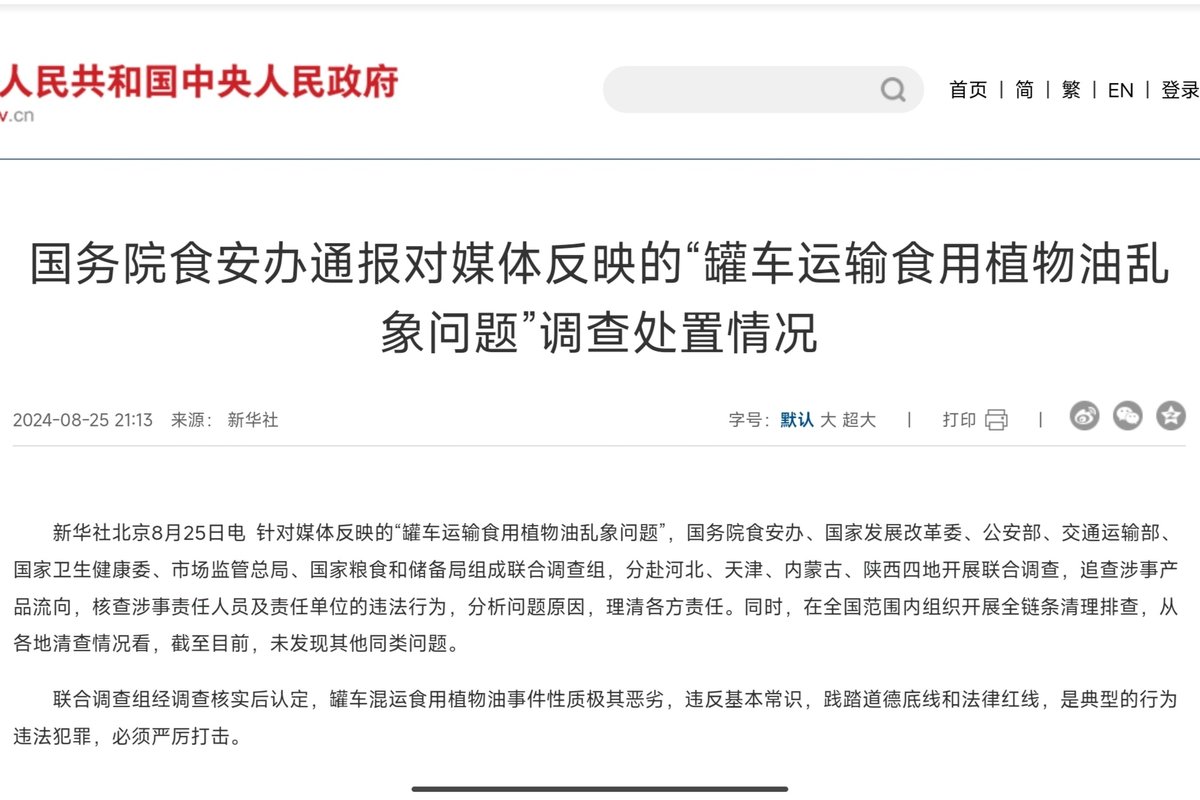 在来说说第二条新闻,可以说就是第一条新闻的润滑剂。我们来看看国务院公开的调查报告,处罚这些都不用看,毕竟有视频为证,这个赖不掉的,但是注意看重点,“调查后发现未发现同类问题”。这又一次刷新了我的三观,意思就是全国只有这一起。全中国共有18万辆油罐车,然后只有两辆混装,而且正好被这个调查记者发现了。我只能说这哥们不应该去当记者,应该去买彩票。在我看来这跟当年动车事故,那句“不管你信不信,反正我信了”有一曲同工之妙。真是把百姓当傻子一样骗,你天天发这种公告,还天天说警惕塔西佗陷阱。难道你自己不是塔西佗陷阱的创造者么?